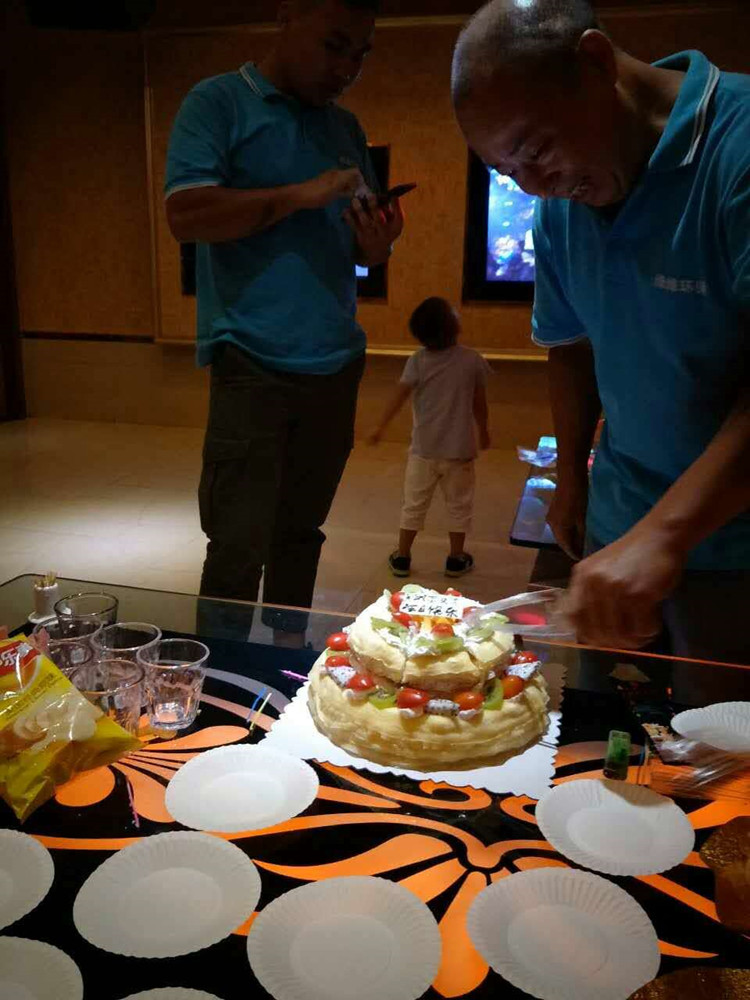 ????? 2017年?7月,公司高層領(lǐng)導(dǎo)齊聚,為公司本季度過生日的家人過生日。生日聚會(huì)上壽星們深深地感慨:“非常感謝公司領(lǐng)導(dǎo)對(duì)我們的關(guān)心,公司為我們過生日,我很感激,但愿每位員工都能感受到來自廣東綠維環(huán)保大家庭的溫暖!”???