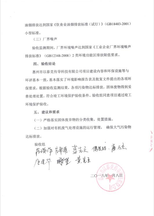 惠州市以泰克傳導(dǎo)科技有限公司驗收意見