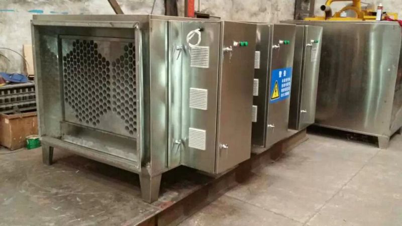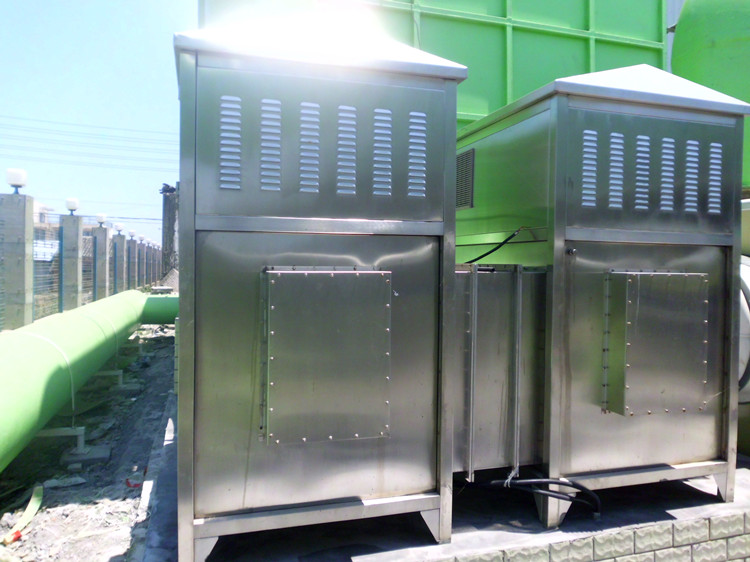 光催化氧化是利用特制的高能高臭氧UV紫外線光束照射惡臭氣體,裂解惡臭氣體如:氨、三甲胺、硫化氫、甲硫氫、甲硫醇、甲硫醚、二甲二硫、二硫化碳和苯乙烯,硫化物 H2S、VOC類,苯、甲苯、二甲苯的分子鍵,使呈游離狀態(tài)的污染物分子與臭氧氧化結(jié)合成小分子無害或低害的化合物,如CO2、H2O等。