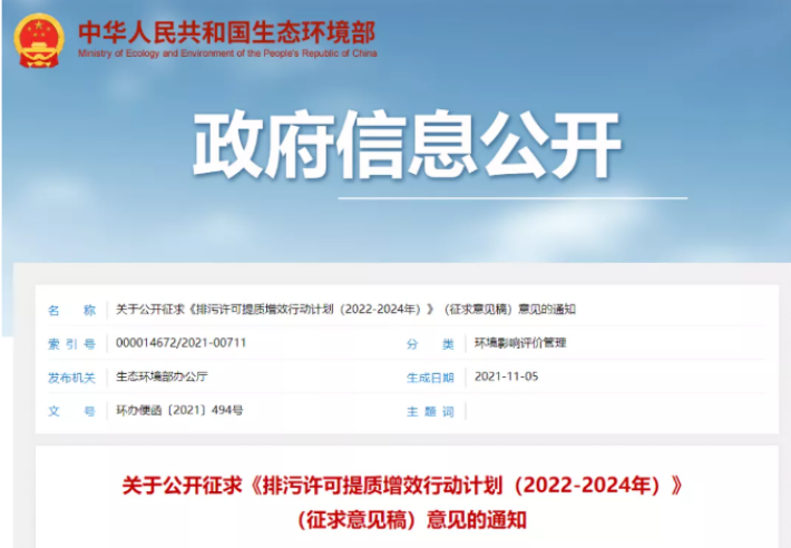 生態(tài)環(huán)境部:《排污許可提質增效行動計劃(2022-2024年)》(征求意見稿)征求意見
