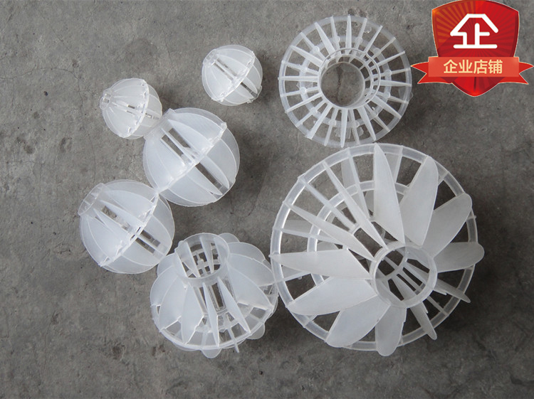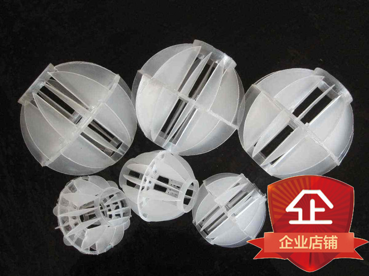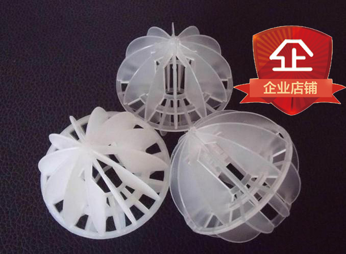 多面空心球采用聚丙烯(PP)塑料制成球狀,由兩個(gè)半球合成一個(gè)球形,兩個(gè)半球的扇形葉片相互錯(cuò)開。該填料特點(diǎn)是比表面積大,空隙率較高。但是由于葉片數(shù)偏多,彼此間有遮蔽效應(yīng),不利于液體分布和潤濕;液體大多在球體空心柱聚集,阻礙氣體暢通,因此阻力較大。重量輕、強(qiáng)度高、自由空間大、耐高溫、耐腐蝕、表面親水性能好、風(fēng)阻小、電耗少、比表面積大且適應(yīng)多種溶劑的處理裝置。此種填料多用于水處理工程廣泛應(yīng)用于除氯氣、除氧氣、除二氧化碳吸收塔、廢氣凈化塔、酸霧凈化塔等環(huán)保設(shè)備中。
