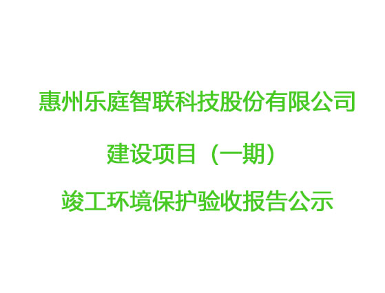 惠州樂庭智聯(lián)科技股份有限公司 建設項目(一期)竣工環(huán)境保護驗收報告公示