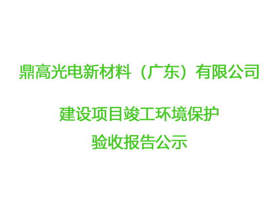 鼎高光電新材料(廣東)有限公司建設項目竣工環(huán)境保護驗收報告公示
