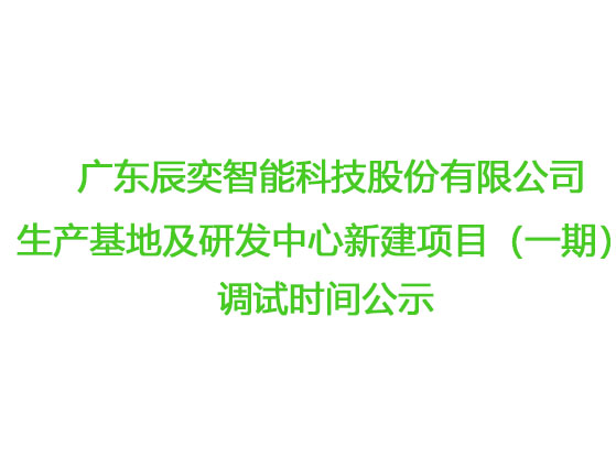 廣東辰奕智能科技股份有限公司生產(chǎn)基地及研發(fā)中心新建項目(一期) 調試時間公示