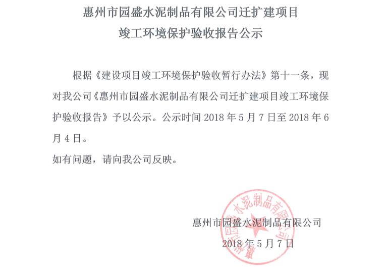 惠州市園盛水泥制品有限公司項(xiàng)目自主驗(yàn)收監(jiān)測調(diào)查報(bào)告