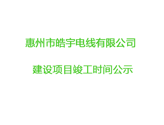 惠州市皓宇電線有限公司建設(shè)項目竣工時間公示