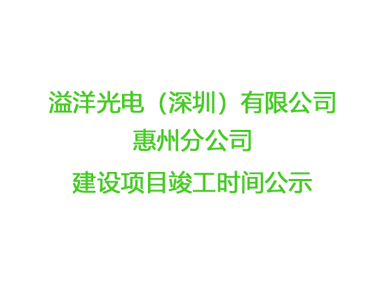溢洋光電(深圳)有限公司惠州分公司建設(shè)項目竣工時間公示