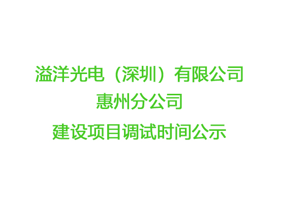 溢洋光電(深圳)有限公司惠州分公司 建設(shè)項目調(diào)試時間公示