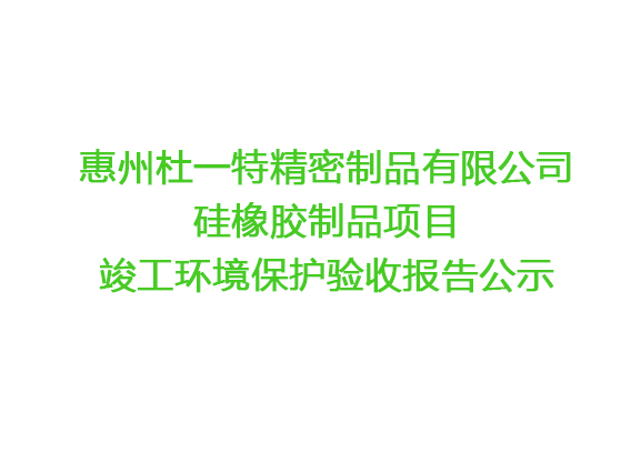 根據(jù)《國務(wù)院關(guān)于修改〈建設(shè)項目竣工環(huán)境保護(hù)管理條例〉的決定》(國務(wù)院令第682號),以及環(huán)保部《關(guān)于發(fā)布的公告》(國環(huán)規(guī)環(huán)評[2017]4號),現(xiàn)將惠州杜一特精密制品有限公司硅橡膠制品項目竣工環(huán)境保護(hù)驗收內(nèi)容(包括驗收報告、驗收意見)公示。