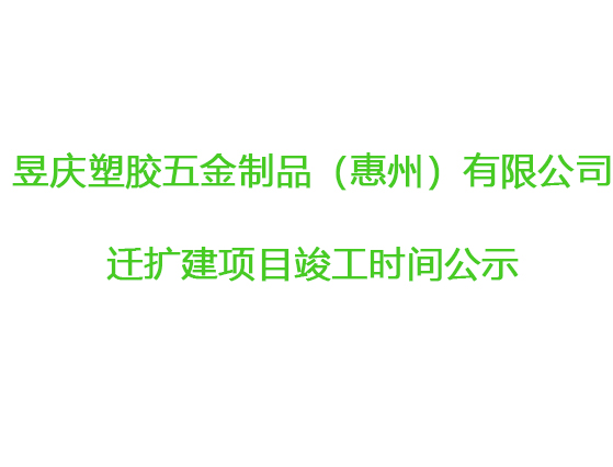 昱慶塑膠五金制品(惠州)有限公司 遷擴(kuò)建項目的竣工日期:竣工日期為2022年7月18日。