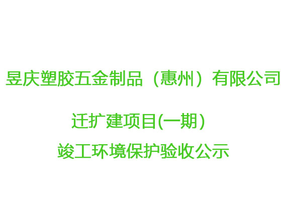 根據(jù)《國務(wù)院關(guān)于修改〈建設(shè)項目竣工環(huán)境保護(hù)管理條例〉的決定》(國務(wù)院令第682號),以及環(huán)保部《關(guān)于發(fā)布的公告》(國環(huán)規(guī)環(huán)評[2017]4號),現(xiàn)將昱慶塑膠五金制品(惠州)有限公司遷擴(kuò)建項目(一期)竣工環(huán)境保護(hù)驗收內(nèi)容(包括驗收報告、驗收意見)。