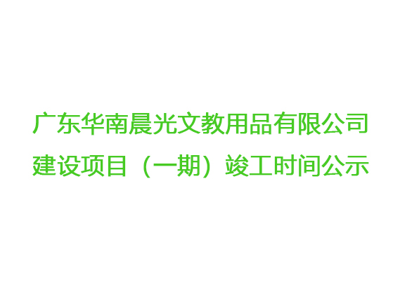 根據(jù)《建設(shè)項目環(huán)境保護(hù)管理條例》、《關(guān)于發(fā)布<建設(shè)項目竣工環(huán)境保護(hù)驗收暫行辦法>的公告》(國環(huán)規(guī)環(huán)評〔2017〕4號)等要求,我公司公開廣東華南晨光文教用品有限公司建設(shè)項目(一期)的竣工日期: