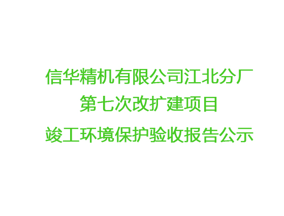信華精機(jī)有限公司江北分廠(chǎng)第七次改擴(kuò)建項(xiàng)目調(diào)試時(shí)間公示